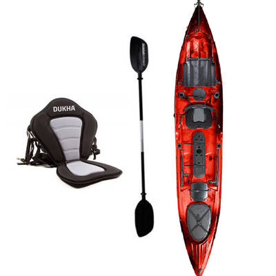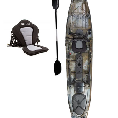 Con un peso de 36kgs está diseñado para ser la opción perfecta para todo tipo de aguas. Viene equipado con 4 porta cañas fijos, un asiento deluxe y con el sistema de pedales de la línea Dukha controlable con los pies.